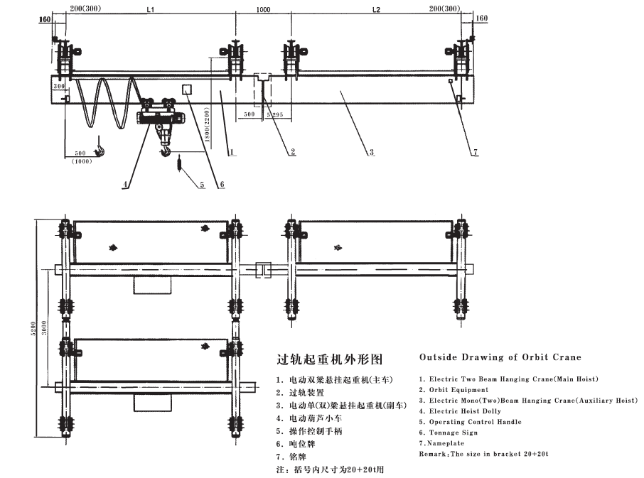 3、 該產(chǎn)品屬于組合設(shè)備,由電動(dòng)葫蘆小車、電動(dòng)雙梁懸掛起重機(jī)(主車)、(手)電動(dòng)單(雙)梁懸掛起重機(jī)(副車)和過(guò)軌裝置組成。